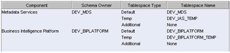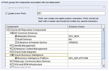 · Step 3 of 7: Component Detail > Select the Oracle Business Intelligence Compoment. This action automatically selects the Metadata Services (MDS) schema (under the AS Common Schemas group), which is also required by Oracle Business Intelligence.