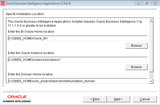 4. Provide the proper path for the OBIEE_HOME location,Oracle_instance and Domain Home Location as shown below.
