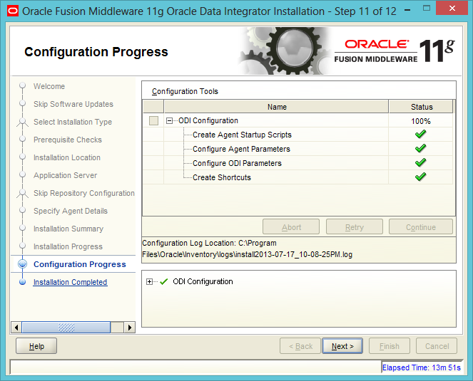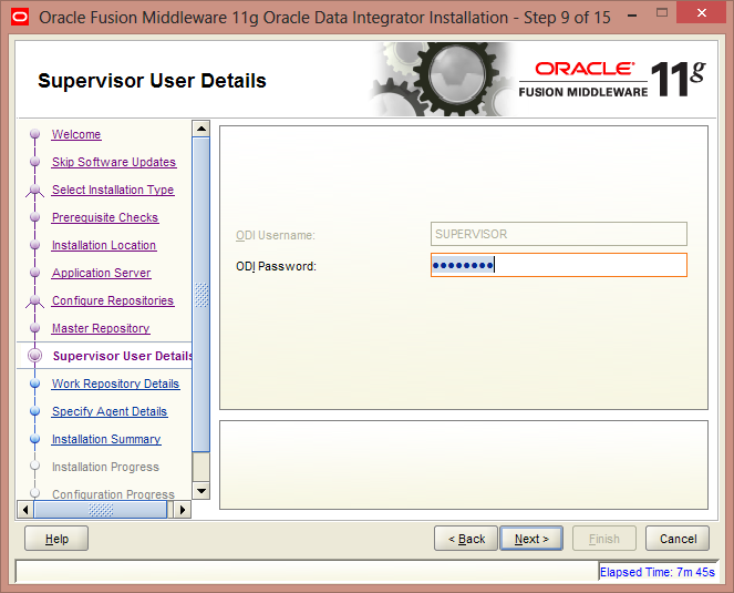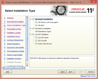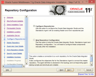 I was installing through the normal process but I couldn’t proceed further after the Agent section if I was creating the Work Reporsitory and the Master Repository. This can be because my system was a Windows 8 system. But anyways we can create the Master Repository and the Work Repository after the basic installation of the ODI also.