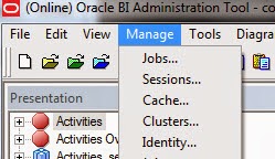3. Once the user is added first check is to see if the user is reflected in the RPD. For that Open the RPD in online mode and then click Manage Identity and do the following as below in the screenshot