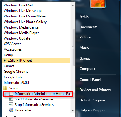 Hi everybody after a lot of pain and issues I successfully installed 64 bit Informatica 9.0.1 Server and Client in Windows 7. According to Informatica Windows 7 is not a recommended operating system however installation of Informatica is possible. Please find the steps with the screenshots.