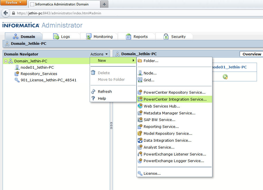 14. Create Power Center repository Services